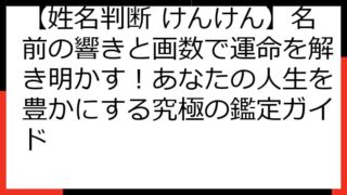 【姓名判断】開運ニックネームの作り方!あなたの「運命を変える」最強ネーミング戦略 この記事では、あなたの人生をより豊かに、より輝かせるための「開運ニックネーム」の作り方を、姓名判断の専門的な視点から徹底解説します。 ニックネームは、単なる愛...