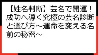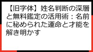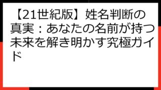 【決定版】姓名判断で「いい名前」をつける!運命を呼び込む命名の秘訣 このブログ記事では、姓名判断の基本から、良い名前が人生に与える影響、そして具体的な名前の選び方まで、網羅的に解説します。 あなたの子供に、あるいはあなた自身に、運命を切り開...