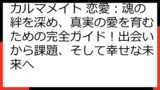 この記事では、カルマメイトと嫉妬の関係性を深く掘り下げ、その原因を理解し、嫉妬を乗り越えるための具体的なステップを提示します。