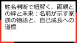 - 名前の持つ力は、単に吉凶を占うだけでなく、逆境を乗り越え、成長するための「心の支え」や「行動指針」としても機能するのです。