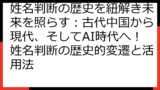 特に、江戸時代には「姓名術」として庶民の間で広く浸透し、現在でもその流れを汲む姓名判断が数多く存在します。