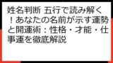 五行相性と、画数の組み合わせを意識することで、あなたの名前が持つ運勢の傾向を把握することができます。