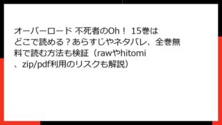 オーバーロード 不死者のOh! オーバーロード 不死者のOh! 15巻はどこで読める?あらすじやネタバレ、全巻無料で読む方法も検証(rawやhitomi、zip/pdf利用のリスクも解説)