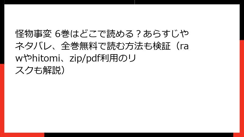 『怪物事変』を海賊版サイトで読むリスク:知っておくべき危険性