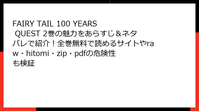 『FAIRY TAIL 100 YEARS QUEST』2巻を海賊版サイトで読むことのリスク