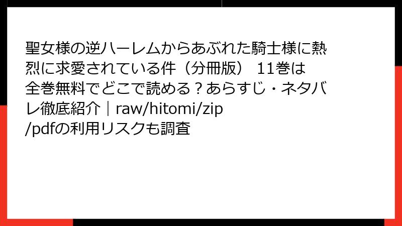『聖女様の逆ハーレムからあぶれた騎士様に熱烈に求愛されている件(分冊版)』は、七月タミカ先生による漫画で、原作はクレイン先生による人気のファンタジーロマンス作品です。この作品は、純粋で愛が重い騎士アルフレッドと、過酷な境遇から抜け出そうとするヒロイン・ラシェルの恋模様を描いた物語。第11巻では、彼らの関係がさらに深まり、新たな展開が読者を引き込みます。以下では、第11巻のあらすじを詳細に解説し、物語の魅力や見どころを紐解いていきます。