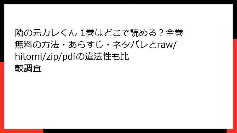 海賊版サイトで漫画を読むことは、著作権法に違反する行為です。『隣の元カレくん』のような作品は、作者や出版社が権利を持つ知的財産であり、無断でアップロード・ダウンロードすることは違法です。以下に、具体的な法的リスクを挙げます。