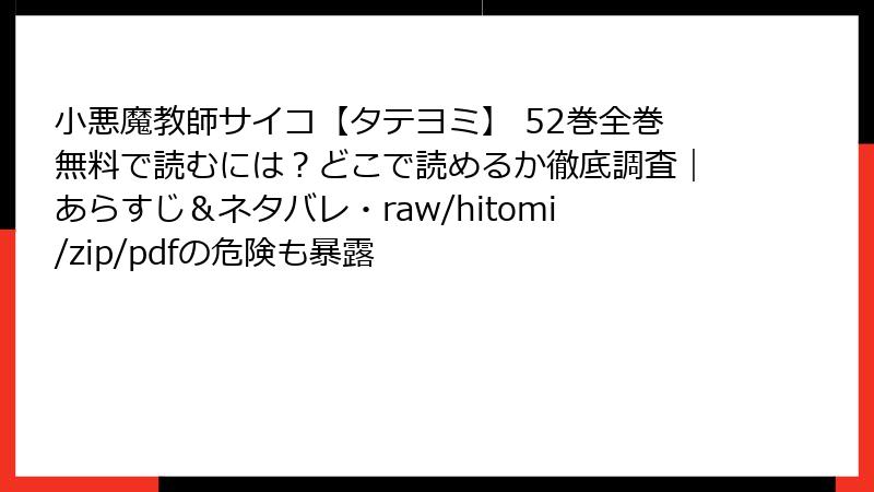 - 配信状況: 『小悪魔教師サイコ【タテヨミ】』は最新巻(52巻を含む)まで配信中。無料試し読みも提供されており、最初の数話が無料で読めます。