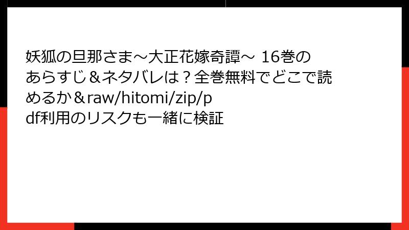『妖狐の旦那さま~大正花嫁奇譚~』16巻は、ストーリー、キャラクター、作画のすべてで高い評価を受け、ファンの期待を裏切らない一冊となっています。灯里と実琴の愛の物語、緊迫感ある戦い、そして美しい大正の世界観は、読者を魅了し続けています。次巻への期待も高まる中、この作品のファンコミュニティはますます盛り上がることでしょう。まだ読んでいない方は、ぜひ正規のプラットフォームでその魅力を体感してください!