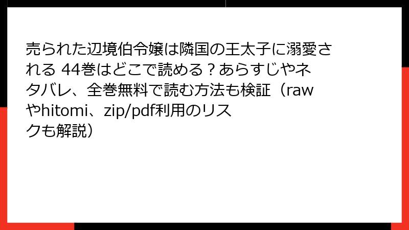 売られた辺境伯令嬢は隣国の王太子に溺愛される 44巻はどこで読める?あらすじやネタバレ、全巻無料で読む方法も検証(rawやhitomi、zip/pdf利用のリスクも解説)