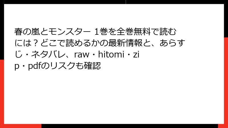 「春の嵐とモンスター」は、ミユキ蜜蜂による人気少女マンガで、白泉社の「花とゆめコミックス」から刊行されています。しかし、一部の読者が、raw、hitomi、zip、pdf、漫画バンクなどの海賊版サイトを利用して無料で読もうとするケースが見られます。これらのサイトは、著作権を侵害する違法なプラットフォームであり、利用には重大なリスクが伴います。この記事では、「春の嵐とモンスター」を海賊版サイトで読むことの具体的なリスクを、法的、技術的、倫理的な観点から詳しく解説します。