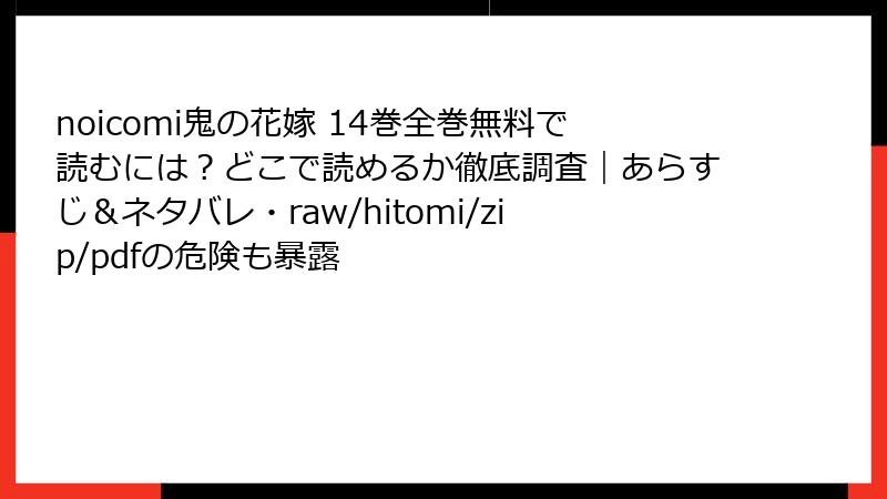 「noicomi鬼の花嫁」は、クレハ原作、富樫じゅん作画による人気のファンタジーロマンスコミックで、柚子と鬼龍院玲夜の感動的な物語が多くのファンを魅了しています。しかし、このような人気作品は、raw、hitomi、zip、pdf、漫画バンクなどの海賊版サイトで違法に公開されることがあります。これらのサイトで漫画を読むことは一見手軽に思えるかもしれませんが、重大なリスクが伴います。この記事では、「noicomi鬼の花嫁」を海賊版サイトで読むことの危険性を、法的、倫理的、技術的な観点から詳しく解説します。以下の内容は、読者が正規の方法で作品を楽しむための意識を高めることを目的としています。