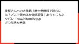 - 配信状況:単行本形式で全巻配信中。話数ごとの購入も可能で、試し読みは8万話以上の無料コンテンツが利用可。