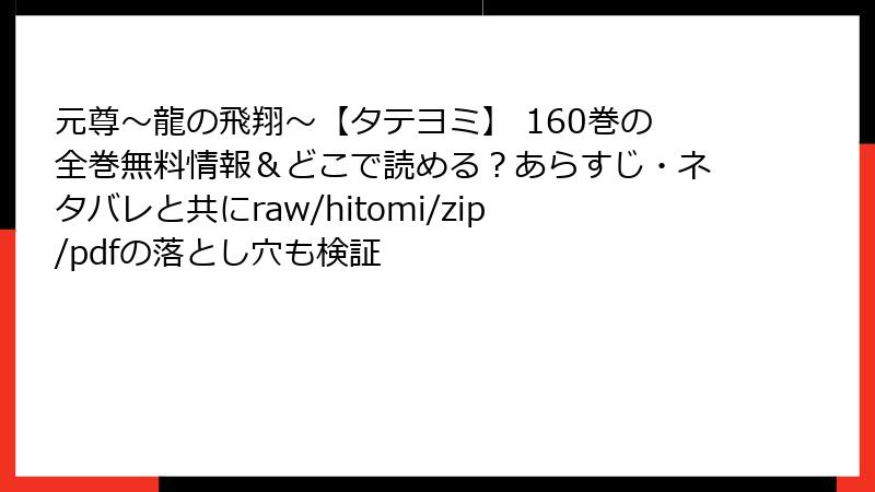 「元尊~龍の飛翔~」第160巻は、壮大なファンタジー世界で繰り広げられる主人公・周元の冒険が新たな高みへと進む、緊張感あふれる一巻です。この巻では、重要なバトルやキャラクターの内面的な成長、そして物語の今後を左右する衝撃的な展開が描かれます。本記事では、第160巻の詳細なネタバレ情報を、主要なイベント、キャラクターの動向、物語の転換点、そして読者への考察という観点から解説します。まだ読んでいない方は、ネタバレにご注意ください!