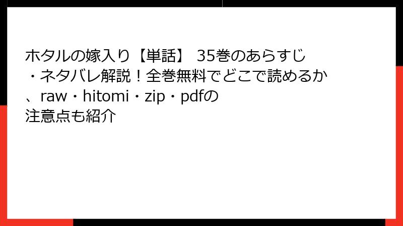 以上が、「ホタルの嫁入り」をraw、hitomi、zip、pdf、漫画バンクなどの海賊版サイトで読むことのリスクについての詳細な解説です。セキュリティ、法律、倫理、ユーザー体験の観点から、海賊版サイトの利用は多くの危険を伴います。合法なプラットフォームを利用することで、安全かつ高品質に作品を楽しむことができ、作者や業界を支えることにもつながります。「ホタルの嫁入り」の魅力を最大限に味わうためにも、ぜひ正規の方法で読んでみてください!