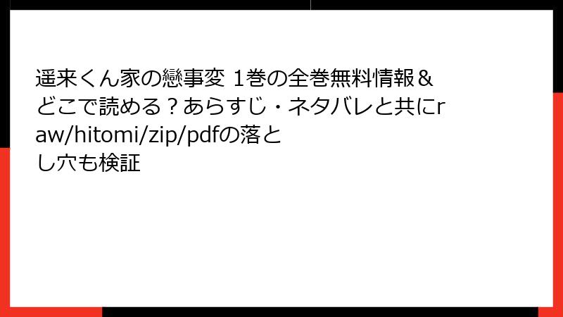 『遥来くん家の戀事変』をraw、hitomi、zip、pdf、漫画バンクなどの海賊版サイトで読むことは、法的、倫理的、技術的、品質的、社会的なリスクを伴います。違法行為による処罰の可能性、作者や業界へのダメージ、マルウェア感染、コンテンツの不完全さ、信頼の喪失など、リスクは多岐にわたります。一方で、正規購入は安全で高品質な読書体験を提供し、作品と作者を支える意義深い選択です。この素晴らしい作品を正規版で楽しみ、遥来と椿の物語を心から応援しましょう!