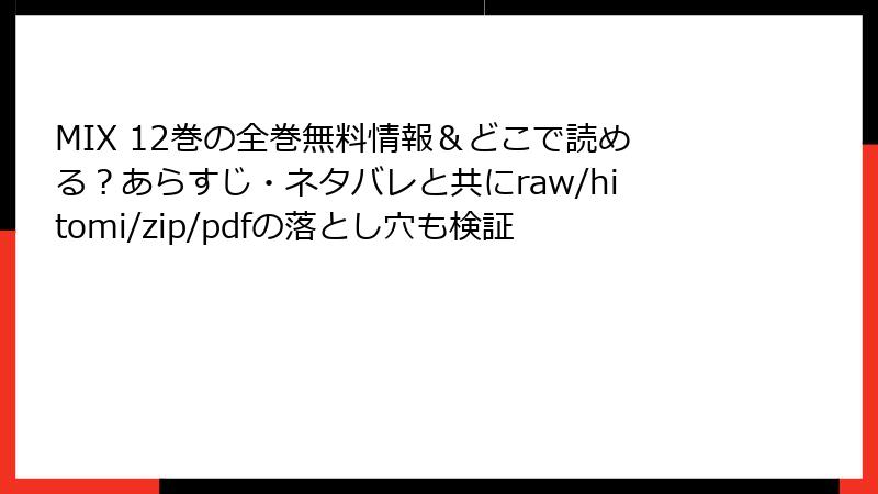 『MIX』12巻を海賊版サイトで読むリスクとは?徹底解説