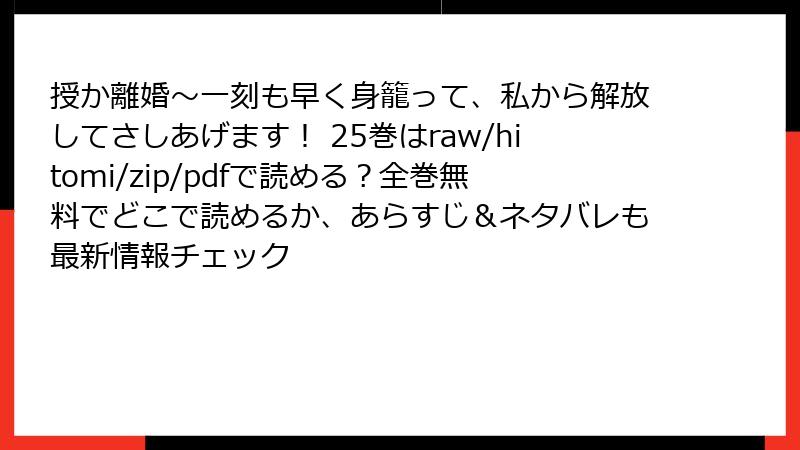 「授か離婚~一刻も早く身籠って、私から解放してさしあげます!」は、かんべあきら原作、長野雪作画による人気の異世界ロマンス漫画で、多くのファンがそのストーリーとキャラクターに魅了されています。しかし、raw、hitomi、zip、pdf、漫画バンクなどの海賊版サイトでこの漫画を読むことは、重大なリスクを伴います。これらのサイトは無料でコンテンツを提供しているように見えますが、法的、倫理的、技術的な問題が潜んでおり、読者にとって深刻な影響を及ぼす可能性があります。この記事では、海賊版サイトで漫画を読むことの具体的なリスクを詳しく解説します。