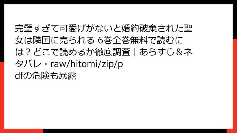 海賊版サイトのリスクを避けるためには、合法的なプラットフォームを利用することが推奨されます。「完璧すぎて可愛げがないと婚約破棄された聖女は隣国に売られる」を安全に読む方法として、以下の選択肢があります。
