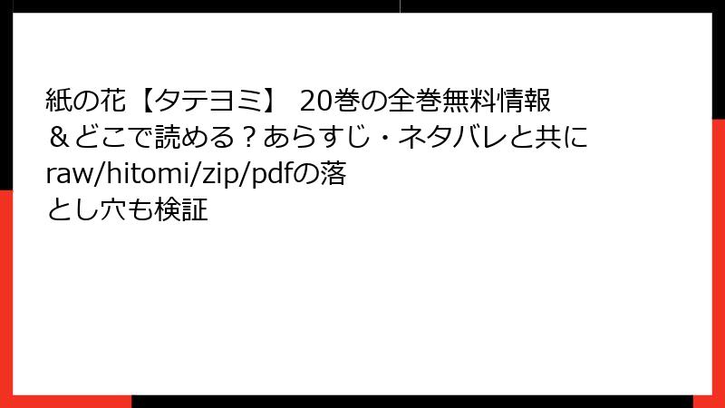 「紙の花【タテヨミ】」をraw、hitomi、zip、pdf、漫画バンクなどの海賊版サイトで読むことは、法的、倫理的、技術的な重大なリスクを伴います。著作権侵害による罰則や訴訟、個人情報漏洩やマルウェア感染、品質の低下など、無料の誘惑には多くの危険が潜んでいます。一方で、公式プラットフォームを利用することで、高品質なコンテンツを安全に楽しみ、作者や業界を支えることができます。漫画を愛する読者として、合法的な方法を選び、「紙の花【タテヨミ】」の美しい物語を正しく堪能しましょう。