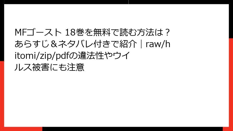 MFゴースト 18巻を無料で読む方法は?あらすじ&ネタバレ付きで紹介|raw/hitomi/zip/pdfの違法性やウイルス被害にも注意