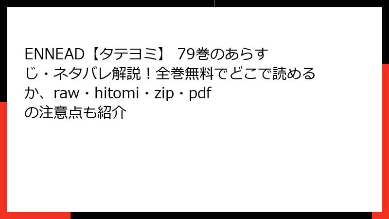 raw/hitomi/zip/pdf/漫画バンクなどの海賊版サイトは、法的・セキュリティ・個人情報・経済的リスクが満載で、決して触れてはいけません。『ENNEAD【タテヨミ】』を愛するなら、正規の電子書籍サービスで高品質なタテヨミ体験を。無料クーポンや試し読みを活用すれば、お得に楽しめます。リスクを避け、クリエイターを支える読書を心がけましょう! 皆さんの安全な漫画ライフを祈っています。感想や質問があれば、コメントでお待ちしてます。