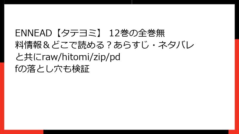 raw、hitomi、zip、pdf、漫画バンクなどの海賊版サイトで『ENNEAD』を読むのは、法的罰金、ウイルス感染、詐欺被害、倫理的問題の四重苦。無料の魅力に惑わされず、U-NEXTやピッコマ、コミックシーモアなどの正規電子書籍サービスを利用しましょう。そこでなら、初回クーポンで大幅割引や無料試し読みが楽しめ、安全に高品質な作品を堪能できます。作者を応援し、自分を守る選択を! 皆さんの体験談やおすすめ正規サイトも、コメントでシェアしてくださいね。