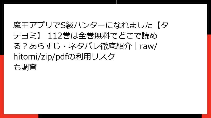 『魔王アプリでS級ハンターになれました【タテヨミ】』は、ダンジョンとハンターの世界を舞台にした人気の漫画で、飯島ヒロトの成長物語が多くの読者を魅了しています。しかし、このような人気作品を、raw、hitomi、zip、pdf、漫画バンクなどの海賊版サイトで読むことは、重大なリスクを伴います。海賊版サイトは無料でコンテンツを提供しているように見えますが、法的な問題からセキュリティの脅威、さらには倫理的な懸念まで、さまざまな危険が潜んでいます。この記事では、こうした海賊版サイトを利用するリスクを、詳細にわたって解説します。以下では、法的リスク、セキュリティリスク、倫理的問題、そして代替案について、具体的に掘り下げます。