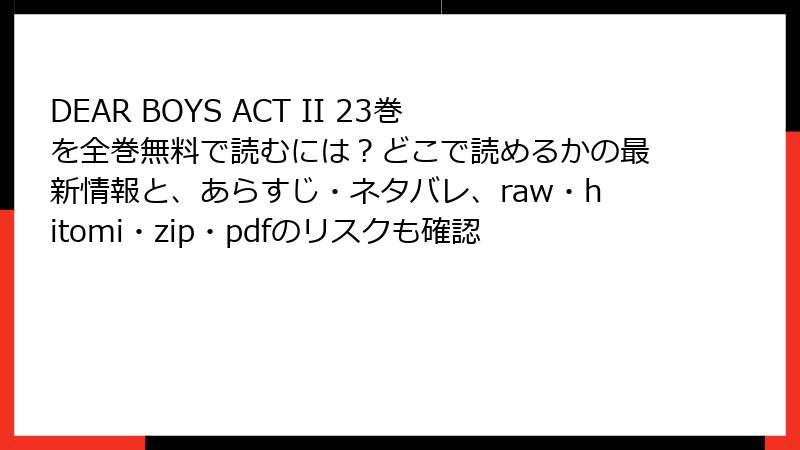 『DEAR BOYS ACT II』23巻を海賊版サイトで読むリスク