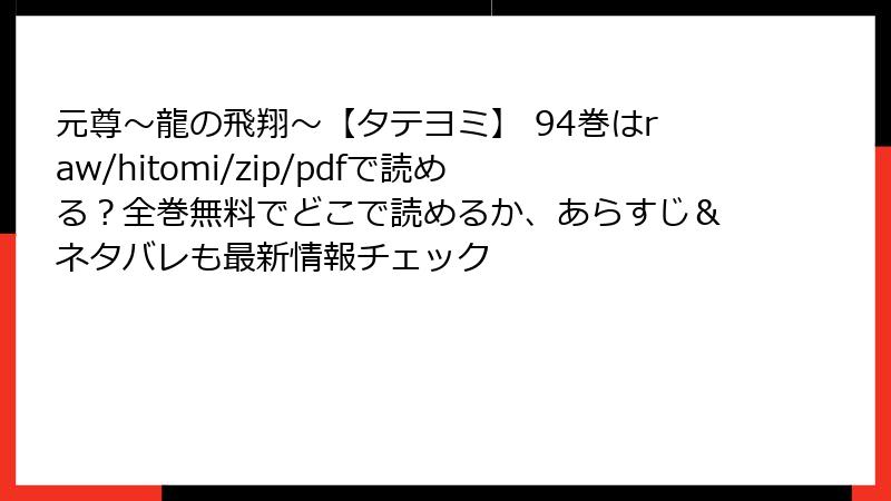 「元尊~龍の飛翔~」は、天蚕土豆による壮大なファンタジー漫画で、タテヨミ形式のダイナミックな展開と魅力的なキャラクターが多くの読者を惹きつけています。第94巻は、物語の新たな局面として注目を集め、ファンからのレビューや口コミで高い評価を受けています。この記事では、第94巻のレビュー、口コミ、評判を、ストーリー、キャラクター、ビジュアル、テーマの観点から詳しく解説します。ファンの声をもとに、なぜこの巻が話題なのかを探ります。以下、ブログ記事形式で、詳細な分析を紹介します。