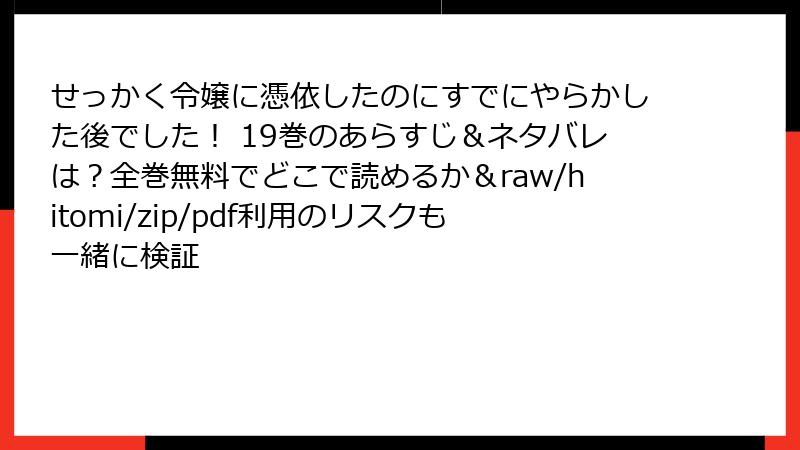 こんにちは、漫画ファンの皆さん! 大人気の異世界転生漫画『せっかく令嬢に憑依したのにすでにやらかした後でした!』は、クリスティナの破滅回避劇とロマンスが魅力の作品です。しかし、この素晴らしい漫画をraw、hitomi、zip、pdf、漫画バンクなどの海賊版サイトで読もうと考える人もいるかもしれません。今回は、海賊版サイトを利用することのリスクを徹底解説します。単なる「無料で読める」誘惑の裏には、重大な危険が潜んでいます。ブログ形式で、