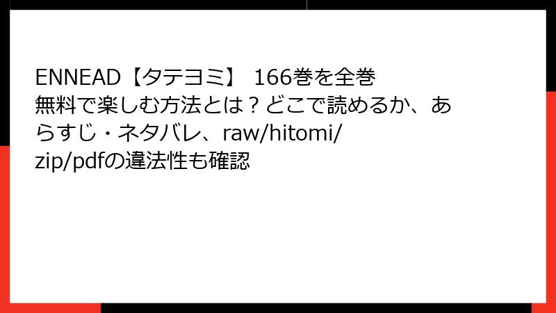 『ENNEAD【タテヨミ】』166巻の壮大な愛憎劇を、海賊版サイトで読むのは法的・セキュリティ・倫理の三重苦。無料の誘惑に負けず、正規の電子書籍サービス(例: 公式アプリや電子書店)を利用しましょう。そこで得られる高品質なタテヨミ体験と、クリエイター支援の満足感は格別です。2025年は法改正の波がさらに来る予感――安全第一で、作品を全力応援! 皆さんの体験談もコメントでシェアしてくださいね♪