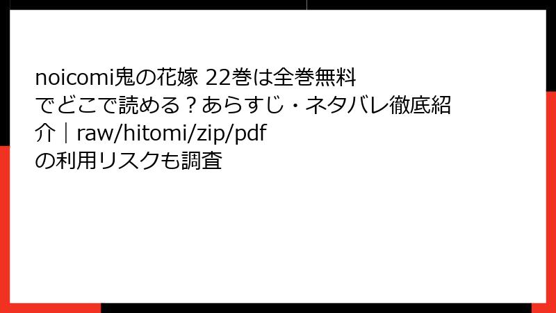 - 公式アプリ・サイトの活用:マンガBANGやピッコマなどで、合法的に無料分を読む。『noicomi鬼の花嫁たな』も電子版で入手可能。