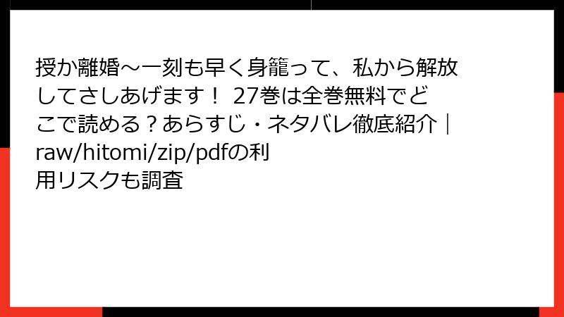 こんにちは、漫画ファンの皆さん! 人気のTLファンタジー漫画『授か離婚~一刻も早く身籠って、私から解放してさしあげます!』を楽しむために、rawやhitomi、zip、pdf、漫画バンクなどの海賊版サイトを利用しようと考えている方もいるかもしれません。しかし、これらのサイトは一見便利に見えますが、実は深刻なリスクが潜んでいます。この記事では、そんな海賊版サイトの利用がもたらす法的・セキュリティ・経済的な危険性を、ブログ形式で詳しく解説します。安全に漫画を楽しむための知識として、ぜひ参考にしてください。利用は絶対に避け、正規ルートをおすすめします!