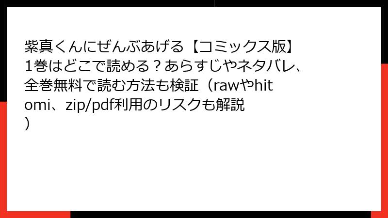 「紫真くんにぜんぶあげる」をraw、hitomi、zip、pdf、漫画バンクなどの海賊版サイトで読むことは、法的なリスク、セキュリティの危険、経済的・倫理的な問題、品質の低下など、多くのリスクを伴います。これに対し、正規のプラットフォームを利用することで、安全かつ高品質に作品を楽しみながら、作者や業界を応援できます。桃李と紫真の切なく甘い恋物語を心から楽しむためにも、ぜひ正規版を選び、漫画文化を支える一歩を踏み出してください。あなたの選択が、愛する作品の未来を守ります。