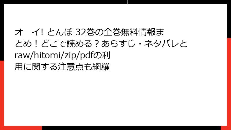 オーイ! とんぼ 32巻の全巻無料情報まとめ!どこで読める?あらすじ・ネタバレとraw/hitomi/zip/pdfの利用に関する注意点も網羅