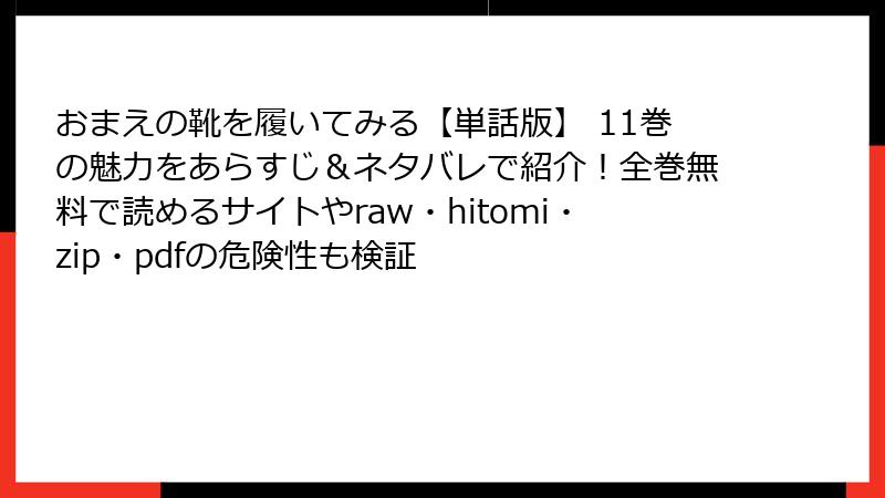 『おまえの靴を履いてみる【単話版】』をraw、hitomi、zip、pdf、漫画バンクなどの海賊版サイトで読むことは、法律的、セキュリティ的、倫理的、品質的なリスクを伴います。著作権侵害による罰則やマルウェア感染の危険、クリエイターへの損失、低品質な読書体験は、無料という誘惑を大きく上回る問題です。望月わらべ先生の素晴らしい作品を安全かつ倫理的に楽しむためには、VIZ MediaやManga Plusなどの正規プラットフォームを選ぶことが最善です。キヨと律の感動的な物語を、安心して高品質で楽しみながら、漫画業界を支える選択をしましょう!