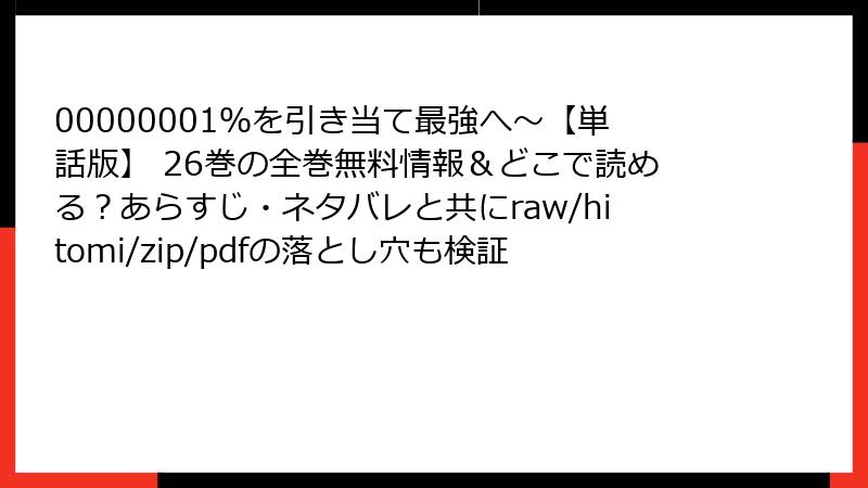 00000001%を引き当て最強へ~【単話版】 26巻の魅力に迫る! 詳細あらすじと見どころ満載レビュー