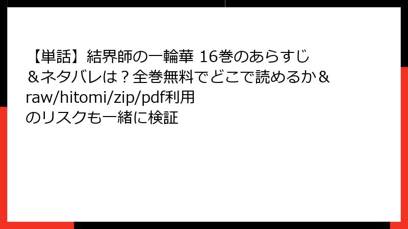 【単話】結界師の一輪華 16巻のあらすじ&ネタバレは?全巻無料でどこで読めるか&raw/hitomi/zip/pdf利用のリスクも一緒に検証