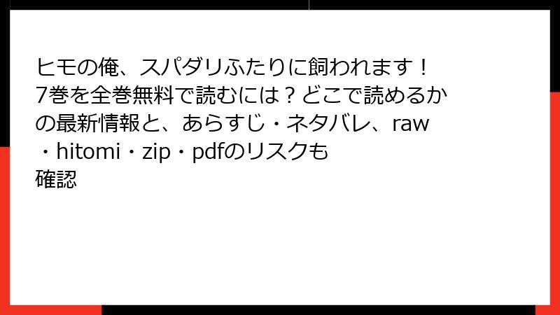 「ヒモの俺、スパダリふたりに飼われます!」は、BLファンに愛される人気漫画ですが、raw、hitomi、zip、pdf、漫画バンクなどの海賊版サイトで無料で読もうと考える人もいるかもしれません。しかし、これらのサイトを利用することは、重大なリスクを伴います。この記事では、海賊版サイトで漫画を読むことの危険性を、法律、セキュリティ、倫理の観点から詳しく解説します。ブログ形式で、読み応えのある内容をお届けしますので、ぜひ最後までご覧ください!