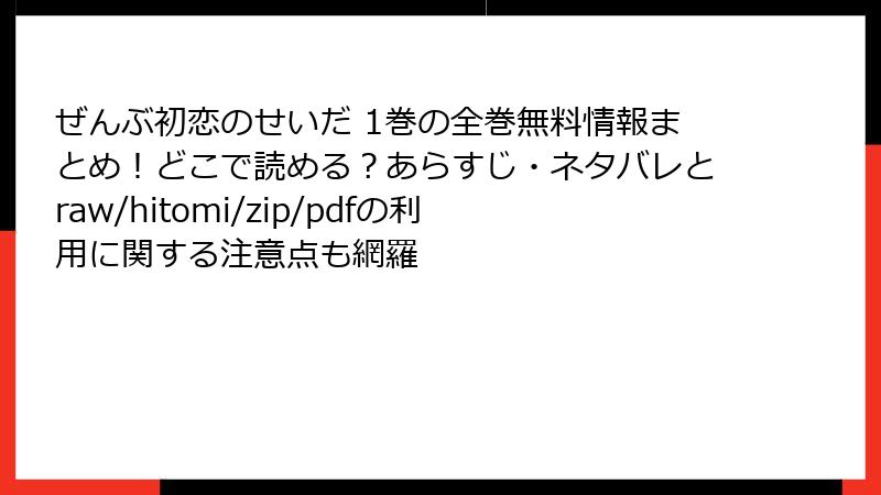 raw/hitomi/zip/pdf/漫画バンクなどの海賊版サイトは、法的・セキュリティ・品質・経済・倫理的なリスクが満載です。『ぜんぶ初恋のせいだ』のような素晴らしい作品を、心から楽しむためには、正規の電子書籍サービスを利用しましょう。無料試し読みやキャンペーンが多く、作者を支援しながら高品質で読めます。リスクを避け、漫画の魅力を存分に味わうために、今日から合法ルートへシフトを! 皆さんの安全な漫画ライフを応援しています。