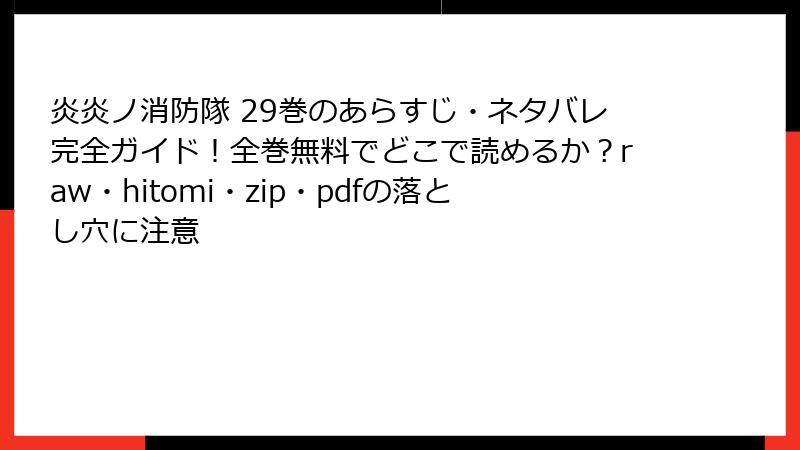 炎炎ノ消防隊 29巻のあらすじ・ネタバレ完全ガイド!全巻無料でどこで読めるか?raw・hitomi・zip・pdfの落とし穴に注意