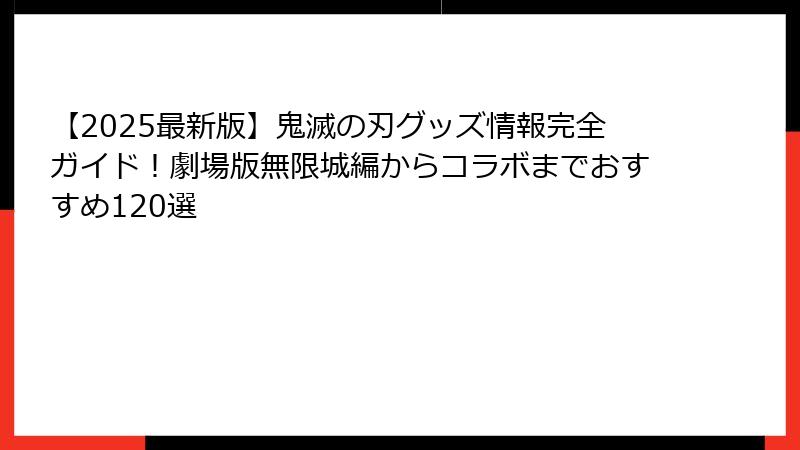 - 鬼滅の刃グッズ情報2025:なぜ今も大人気?劇場版無限城編で再燃するファン熱