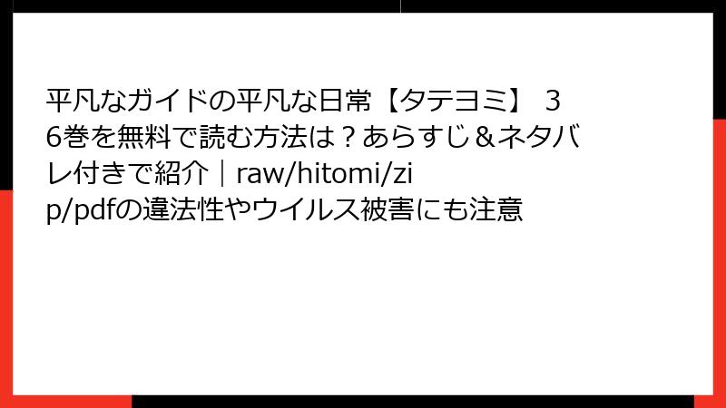 これらを利用すれば、リスクなく「平凡なガイドの平凡な日常【タテヨミ】」を楽しめます。最終的に、海賊版は一時的なものですが、正規手段は長期的な満足を提供します。皆さんも安全第一で漫画の世界を満喫してください!