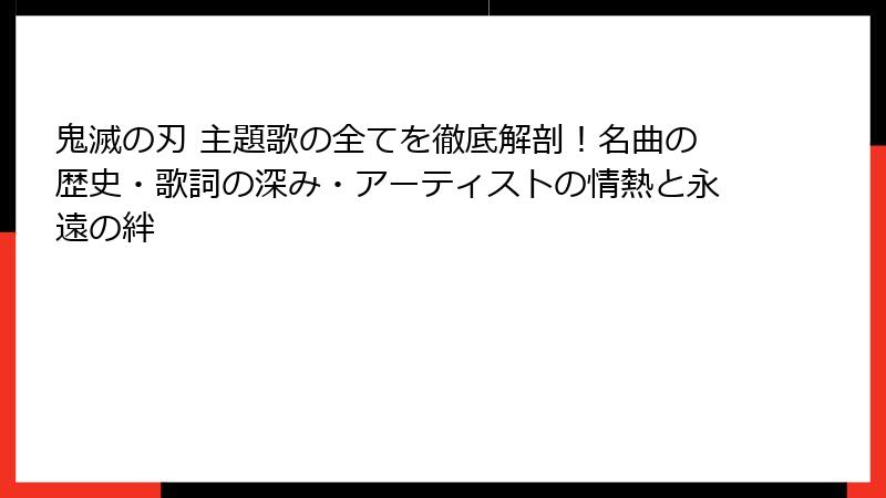 「鬼滅の刃 主題歌」は、物語の終わりとともに進化し、永遠の遺産となります。