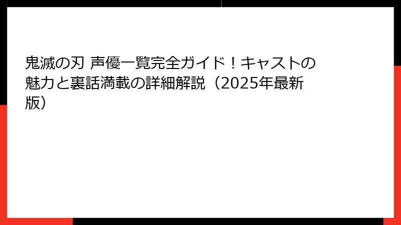加えて、ファンへのメッセージや作品を楽しむためのアクションを提案し、鬼滅の刃 声優一覧の魅力を最大限に伝えます。