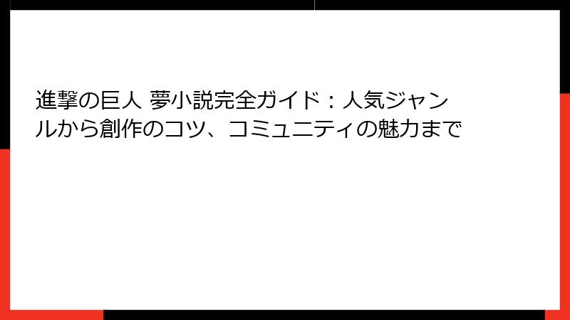 あなたが夢小説の初心者であっても、ベテランのファンであっても、この記事はあなたの「進撃の巨人」愛をさらに深める一助となるでしょう。