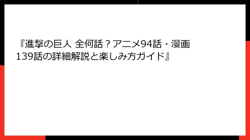 こうした背景が、「進撃の巨人 全何話」という検索を増やしている一因と言えるでしょう。