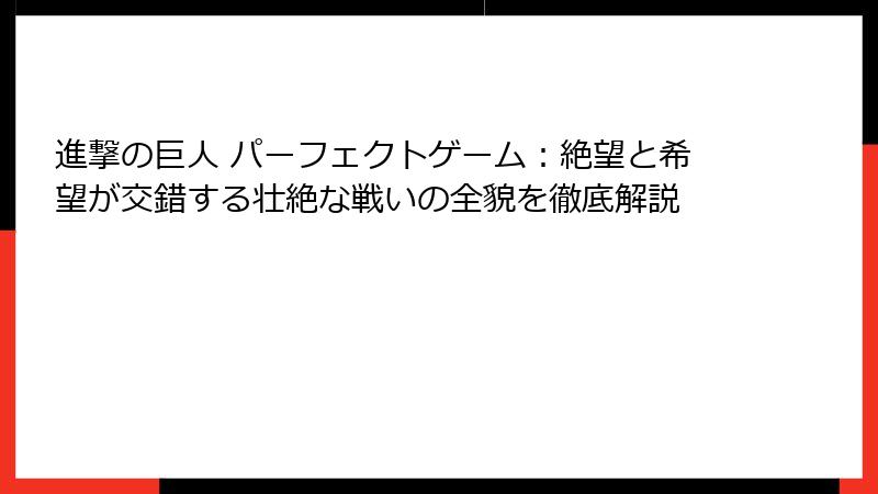 「パーフェクトゲーム」は、進撃の巨人の物語全体の転換点であり、完結編への期待を高めます。