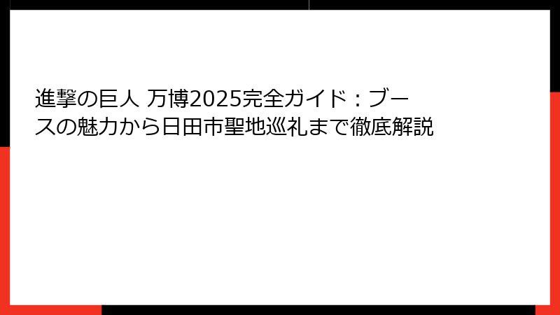 この記事では、ブースの詳細、訪問のコツ、さらには日田市への聖地巡礼プランまで、5つのセクションで徹底解説!あなたも「進撃の巨人」と万博の熱狂に飛び込む準備はできているだろうか?
